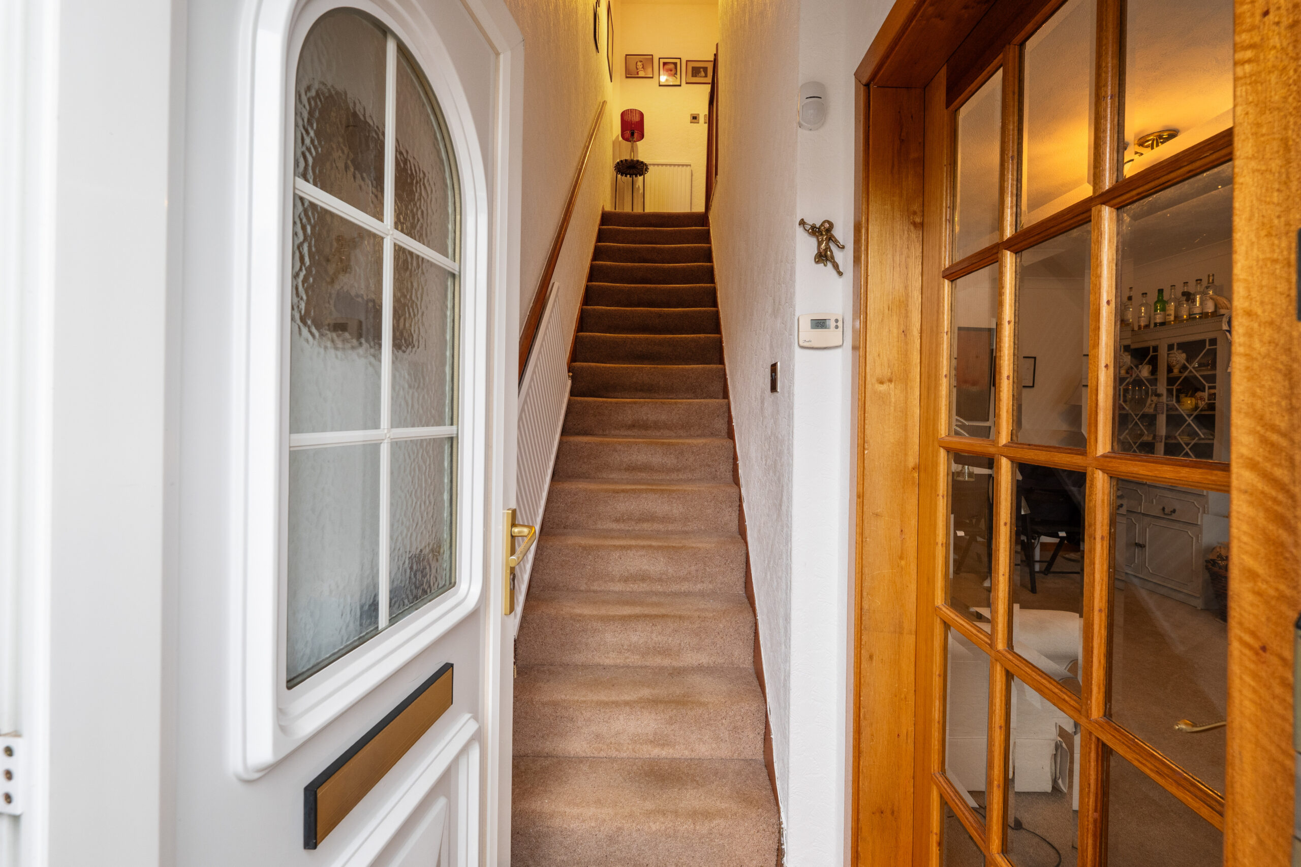 The property is positioned on a mostly level plot, with no stairs to the front door and a small set of steps to the rear. A driveway with parking for one car is positioned to the front of the house. On entering through the front door, a welcoming hallway leads to the ground floor accommodation with stairs to the upper floors.